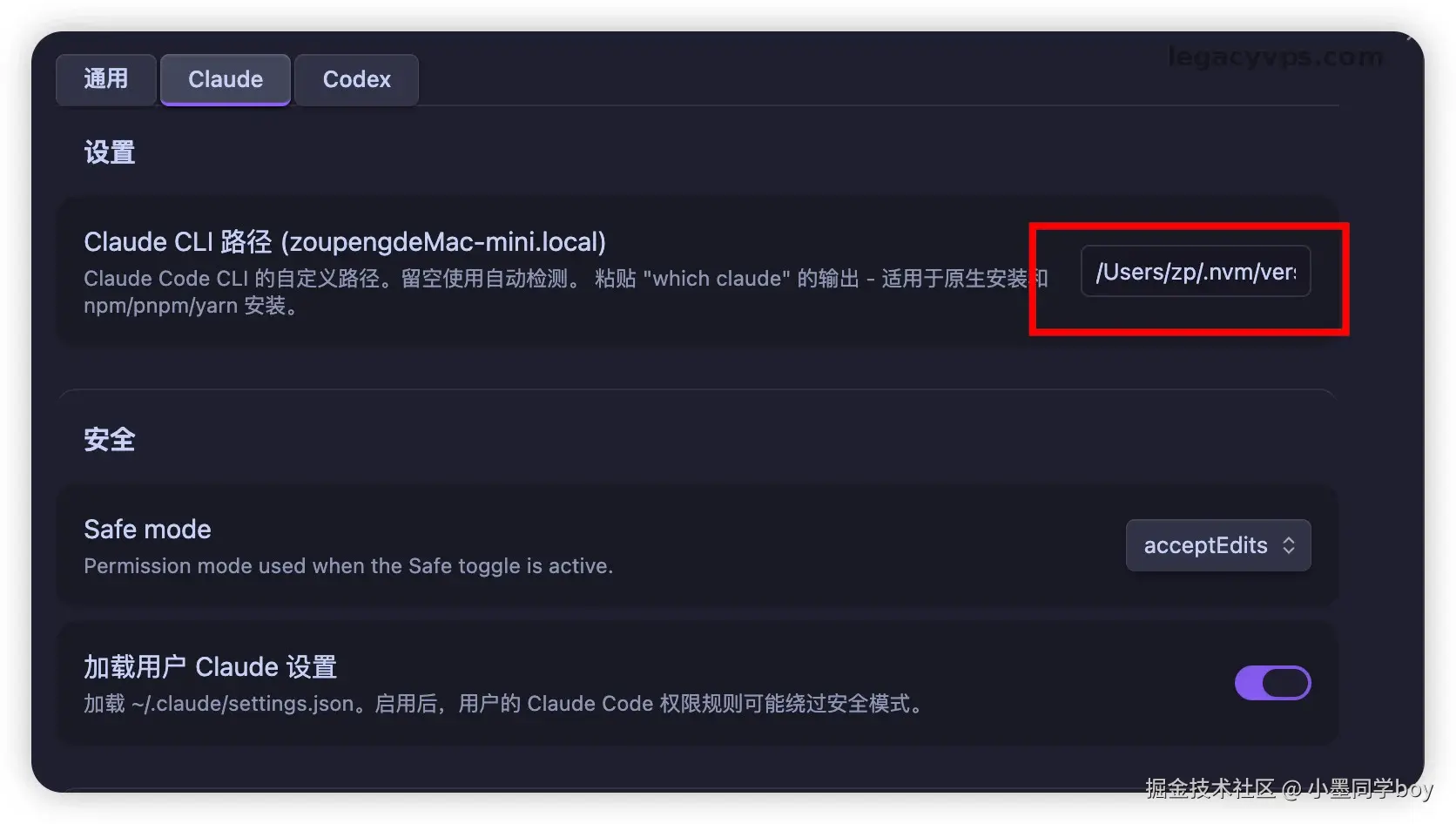 Claude CLI 路径,粘上第一步复制的完整路径 -