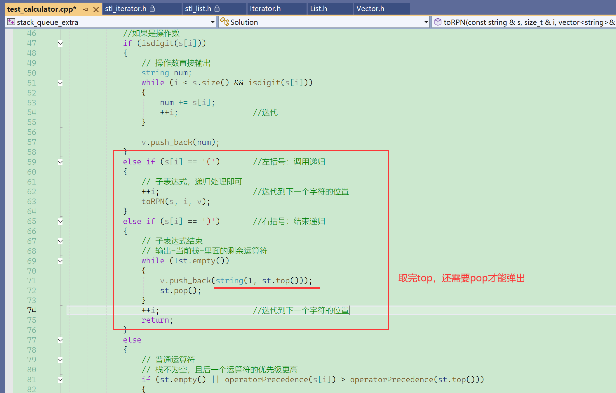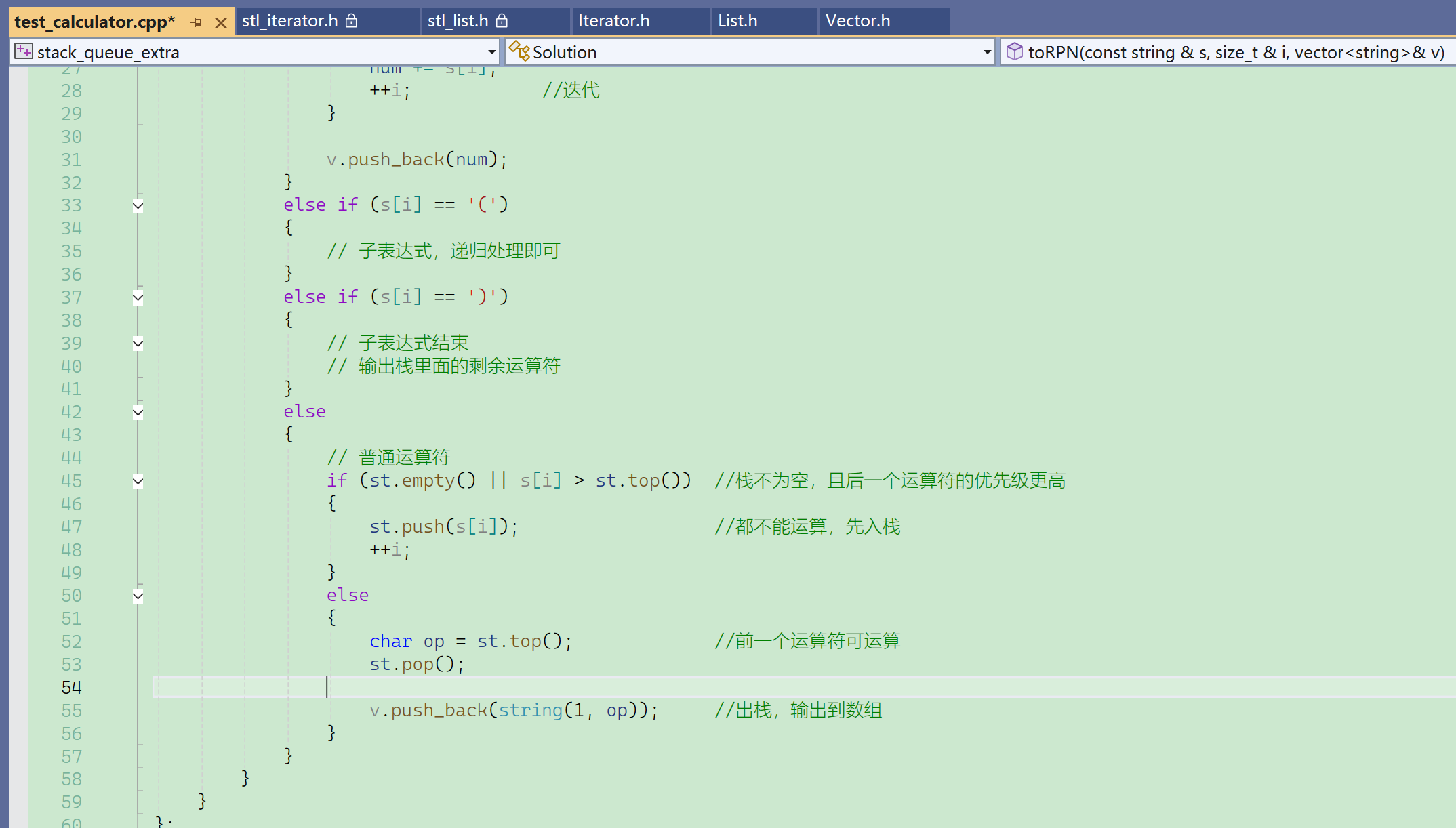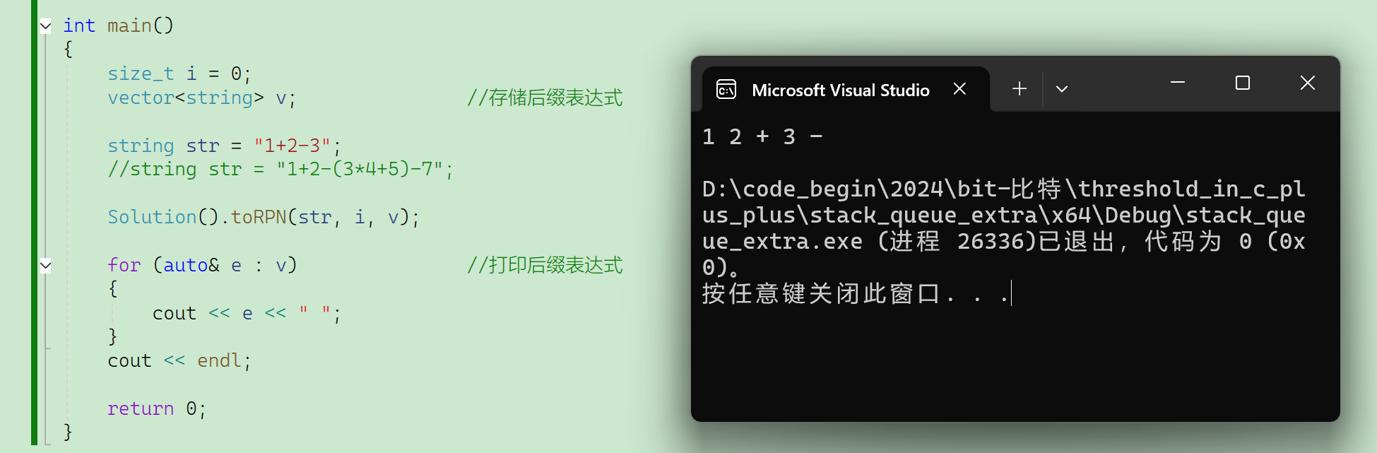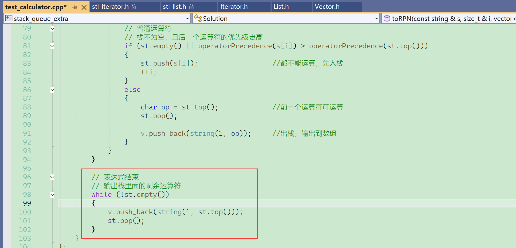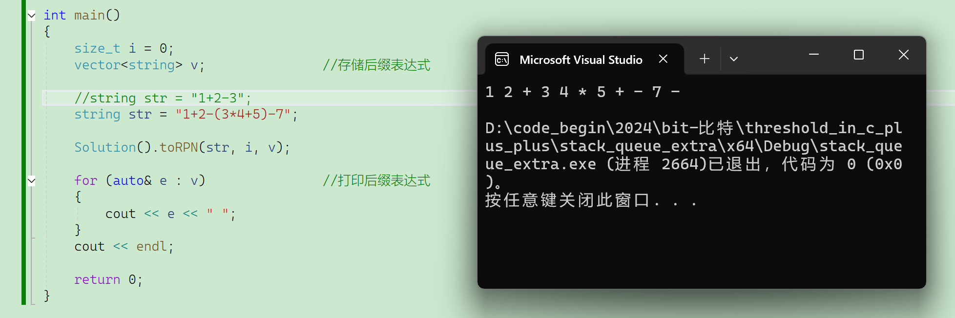 - vextor<string>:给到后缀表达式计算函数;(vector<string>&)(输出型参数)