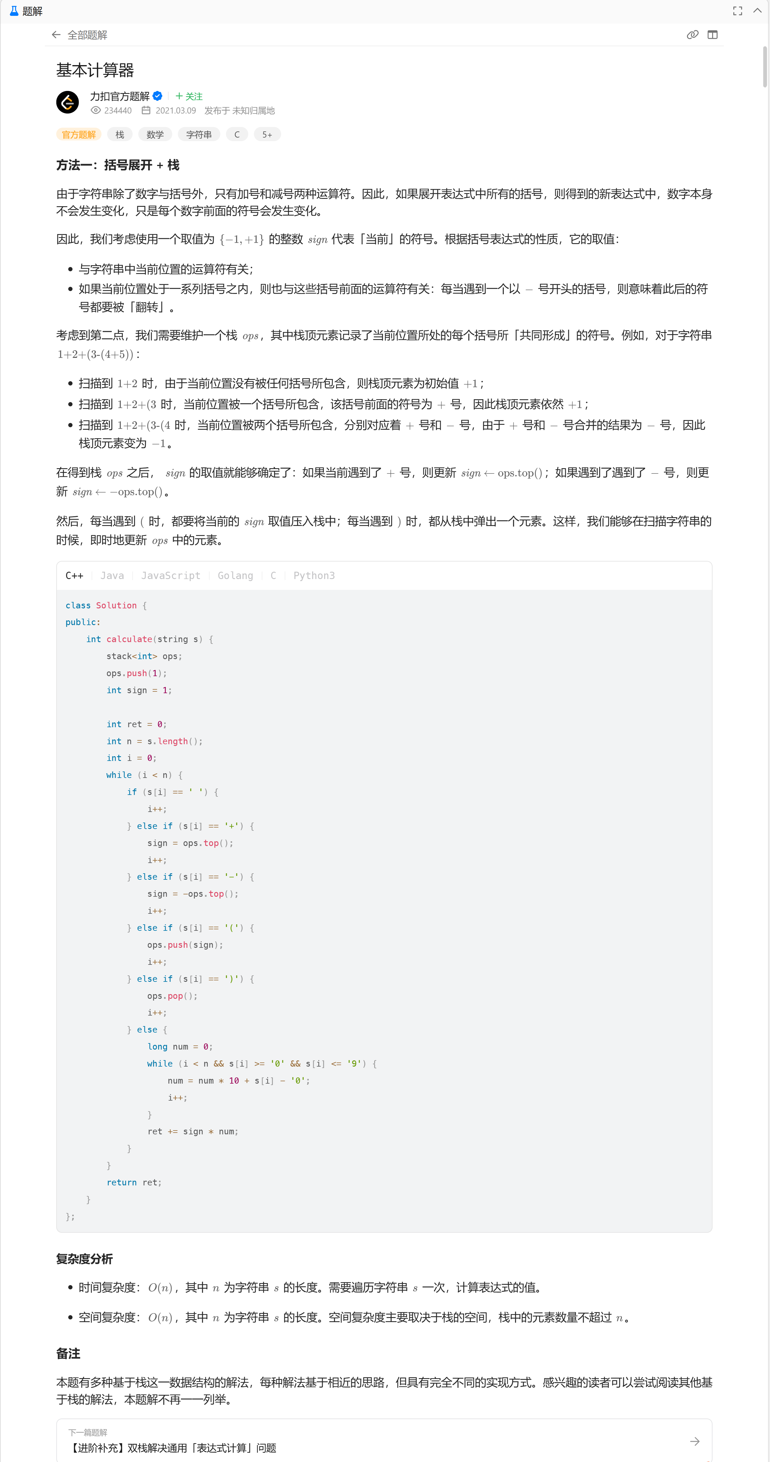 有了上面两个部分的基础,实现一个计算器的OJ题的大部分问题就解决了。