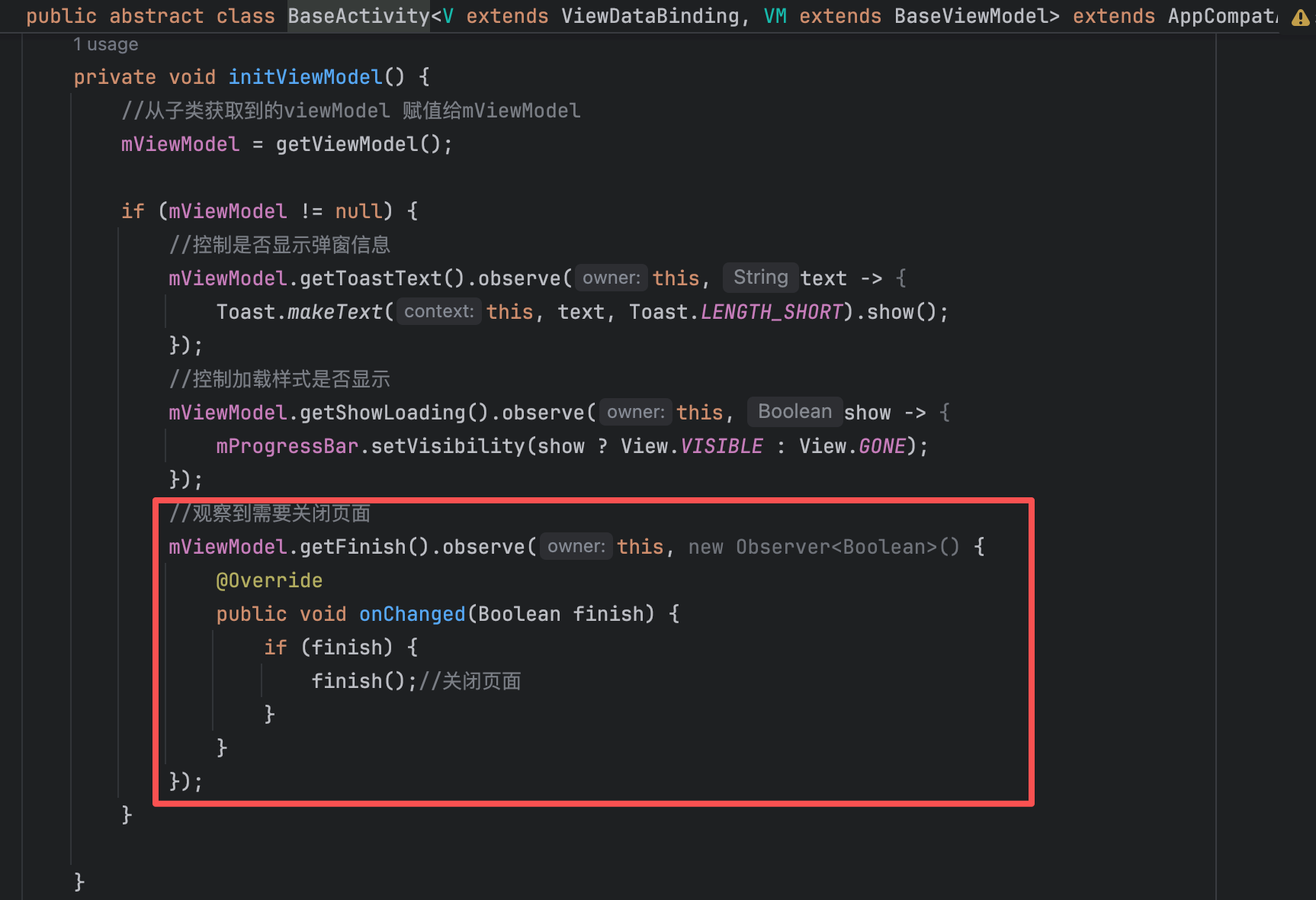private MutableLiveData<Integer> mShowLogoutBtn = new MutableLiveData<>(View.INVISIBLE);