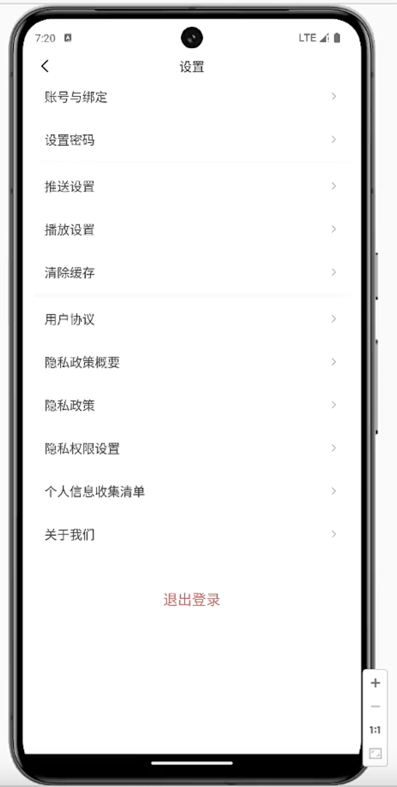 重新登录后回到设置页,退出按钮和手机号都还在: