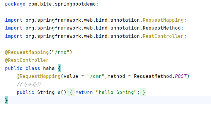 @RequestMapping 既可修饰类,也可以修饰方法,当修饰类和方法时,访问的地址是类路径 + 方法路径.