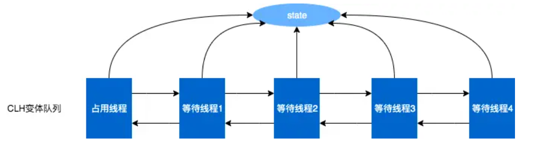 - synchronized:会先进行自旋等待(默认循环 10 次),自旋期间不进入阻塞队列,如果自旋期间拿到了锁,就继续执行;如果自旋失败或竞争加剧,才会膨胀为重量级锁,此时才会调用操作系统 mutex,线程真正进入阻塞队列(等待队列),状态变为 BLOCKED。