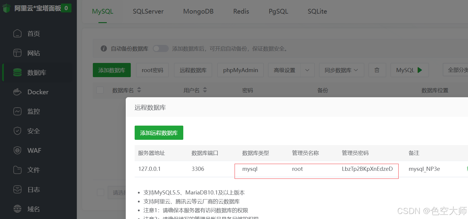 按照宝塔的mysql用户名密码连接,发现连接不了