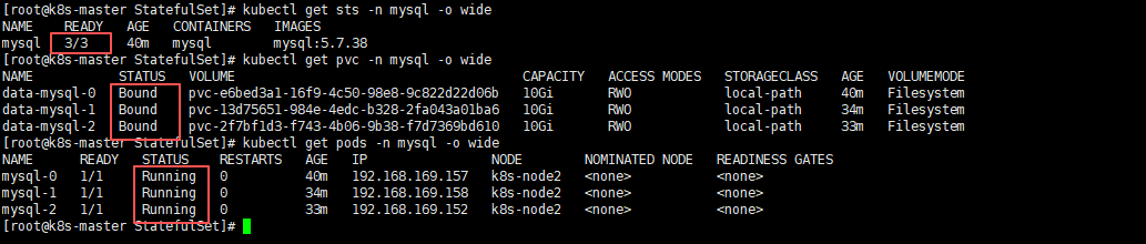 kubectl get sts -n mysql -o wide