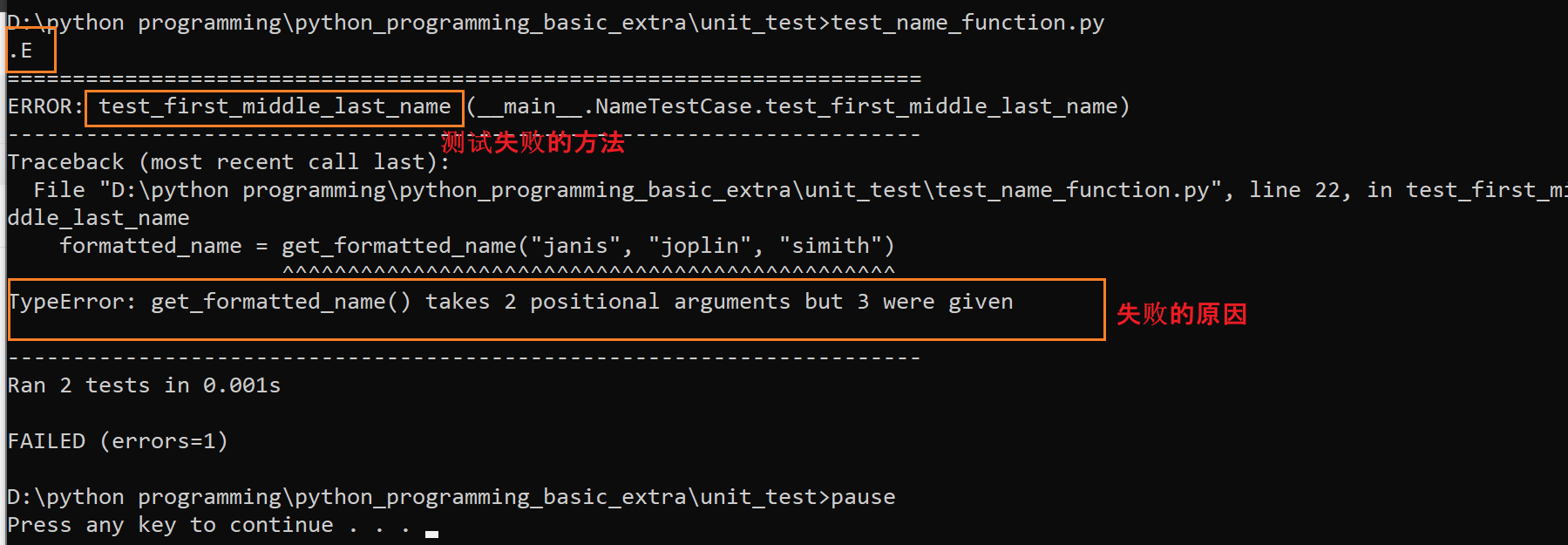 调用get_formatted_name时第二个参数多加一个 "n",会断言不相等