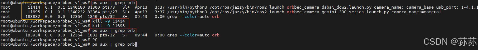 ps aux | grep orb // 查看相机进程 如下图所示情况
