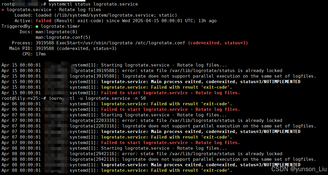 journalctl -u logrotate.service -n 50