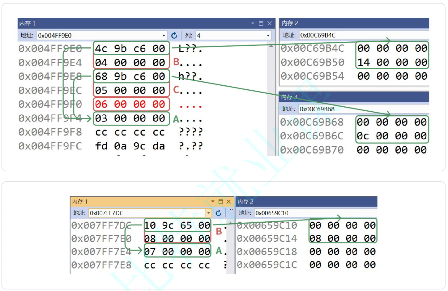 实际地址:00347b48、00347b54。