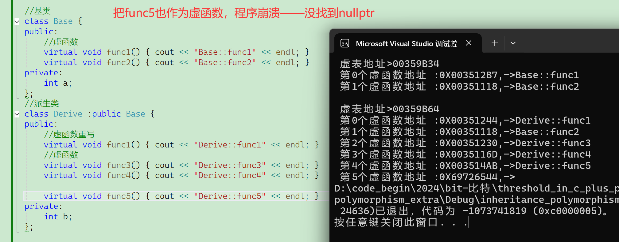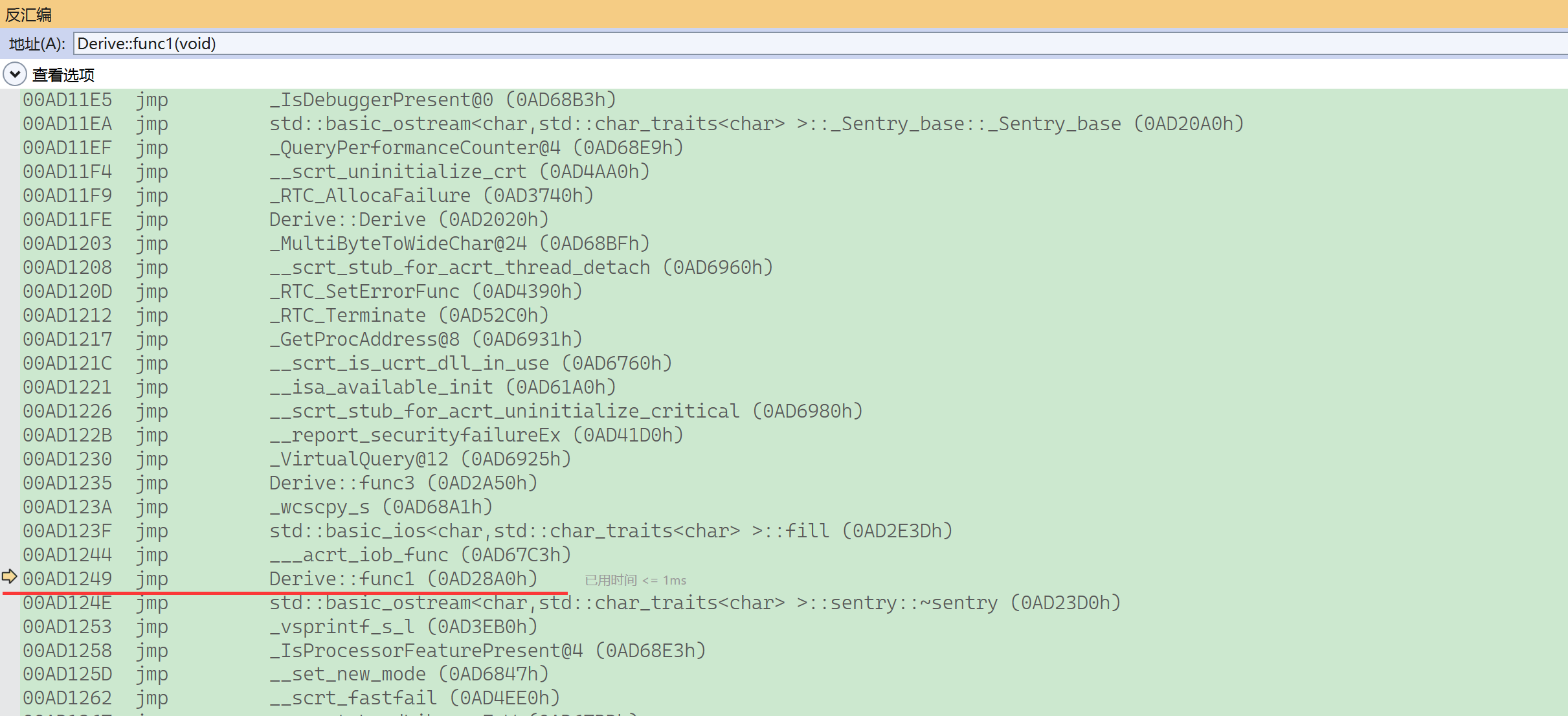 - Base1的虚表地址------jmp(func1)指令地址,是真的jmp(func1)指令地址;