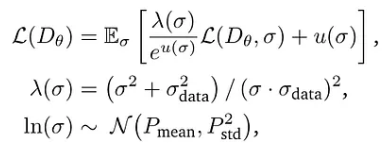 σ 为噪声水平,由 Pmean 和 Pstd 两个超参数控制。σdata 则是训练数据中的标准差,而 λ(σ) 用于确保在训练初始阶段,各噪声水平具有等价的贡献。
