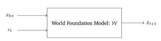 世界基础模型(WFM)可被视为一种以历史观测值 x0:t 和当前扰动 ct 作为输入,进而预测未来状态的模型。世界基础模型期望实现以下目标: