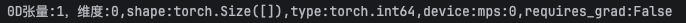 print(f'0D张量:{t1},维度:{t1.ndim},shape:{t1.shape},type:{t1.dtype},device:{t1.device},requires_grad:{t1.requires_grad}')