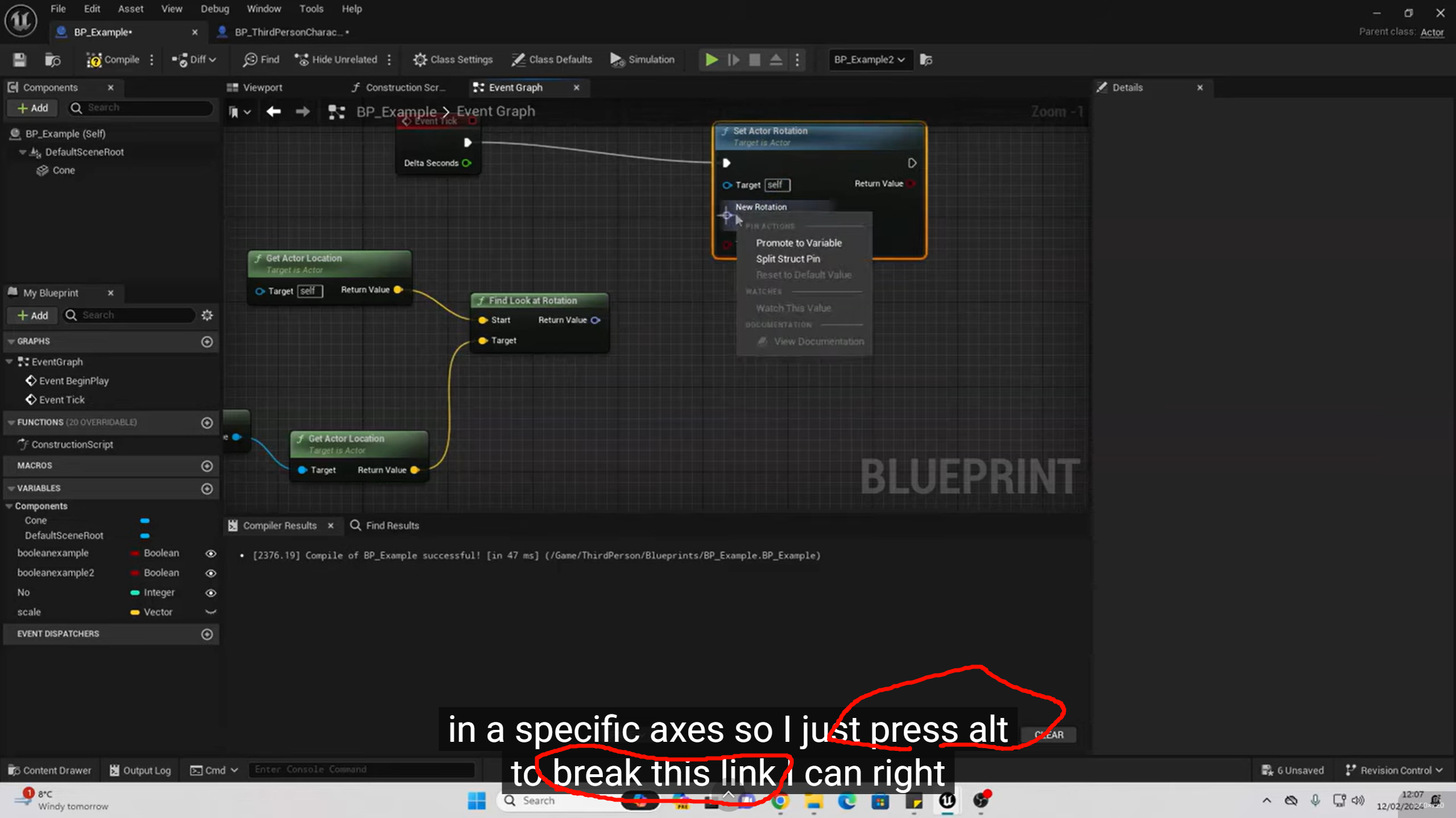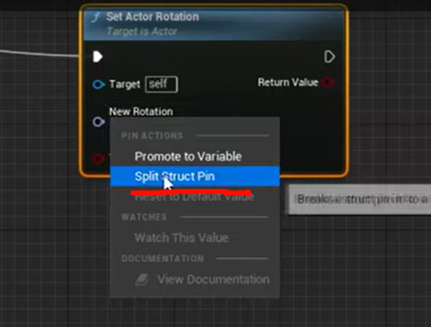 GetRelativeRotation() 节点,只不过它的返回值 FRotator 被 Split Struct Pin 之后,拆成了 3 个 float 输出: