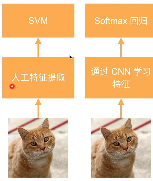 不再需要人工设计特征,卷积神经网络(CNN)会自动从原始像素中通过一层层的卷积核学习。可以理解为:其告诉计算机"猫长什么样",不如给它看一百万张猫的照片,让它自己总结特征。