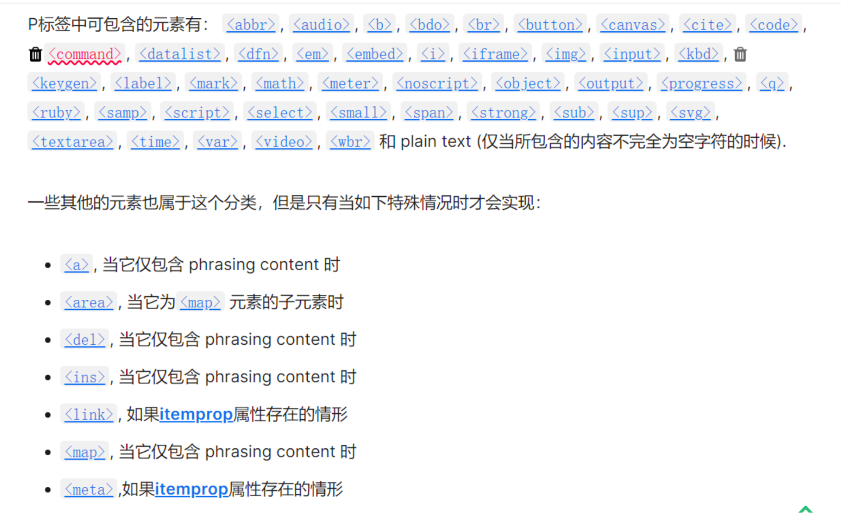 2.p标签可以嵌套的元素