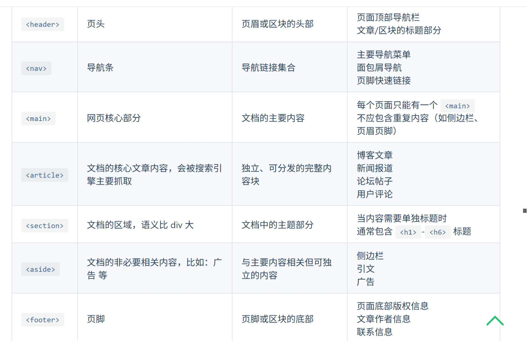 页面结构划分:用于划分页面的不同区域,如页眉、主体、侧边栏、页脚等。
