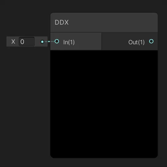 DDX 节点的端口设计体现了其功能的简洁性和灵活性。节点包含一个输入端口和一个输出端口,两者都支持动态矢量类型,这意味着它们可以处理从标量到四维向量的各种数据类型。这种设计使得 DDX 节点能够适应多样化的着色需求,从简单的浮点数处理到复杂的矢量运算。