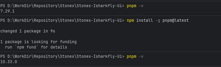 PS D:\WorkDir\Repository\Stonex\Stonex-Isharkfly-Ui> npm install -g pnpm@latest