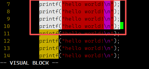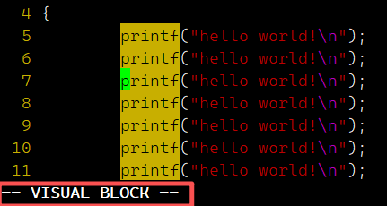 命令模式下,输入 Ctrl + v,进入替换模式。