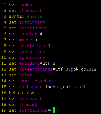 其次,可以自行设置Vim打开文件后光标的位置。