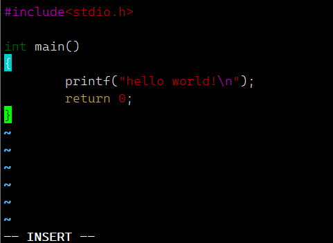 命令模式下,输入 i,进入插入模式,插入模式就是普通的文本编辑模式,这里不多赘述。