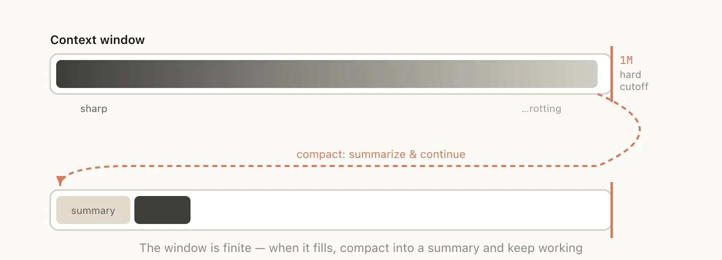 100 万 token 是更大的操作空间,不是「可以不管上下文」的借口。管好上下文,模型就一直好用;任由 context rot 积累,窗口再大也没用。