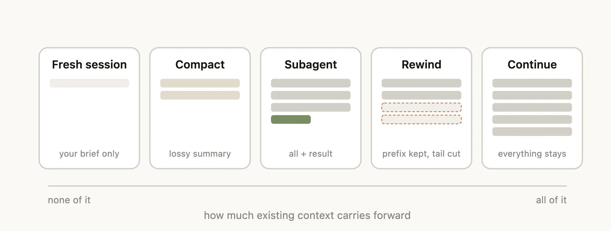 后四个选项都是为了对抗 context rot,只是适用场景不同。
