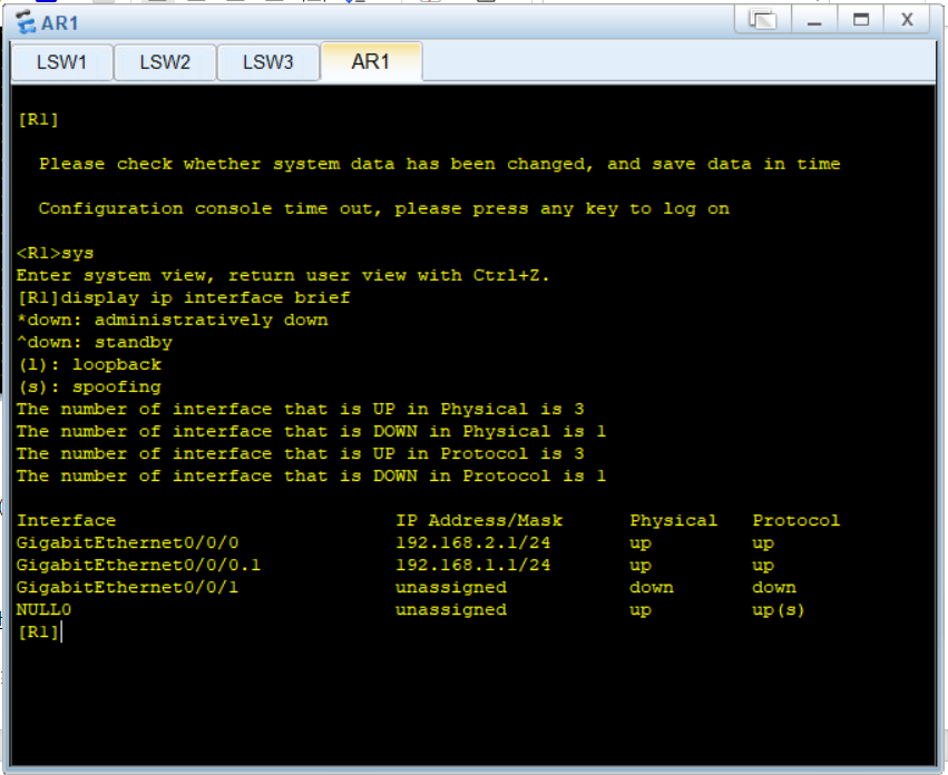 2. IP 配置情况(display ip interface brief) R1:(截图)