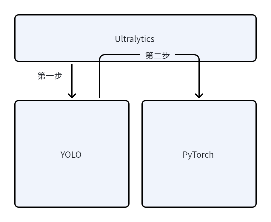 Ultralytics 不自己算,它只 "安排":它告诉 PyTorch 要跑一个叫 YOLO 的网络,PyTorch 负责真正去跑。