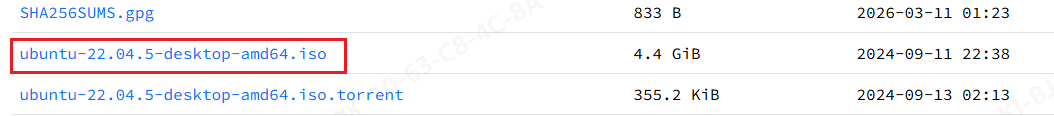 ②Ubuntu下载 :https://mirrors.tuna.tsinghua.edu.cn/ubuntu-releases/22.04/