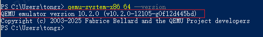 打开powershell 窗口命令查看 qemu是否OK