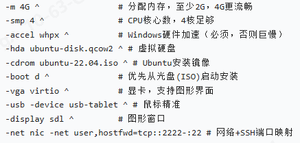 -hda ubuntu-disk.qcow2 `