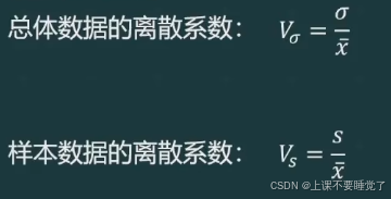离散系数也称作变异系数、标准差系数,它是将一组数据的标准差除以其均值,用来测度数据离散程度的相对数。其计算公式是:
