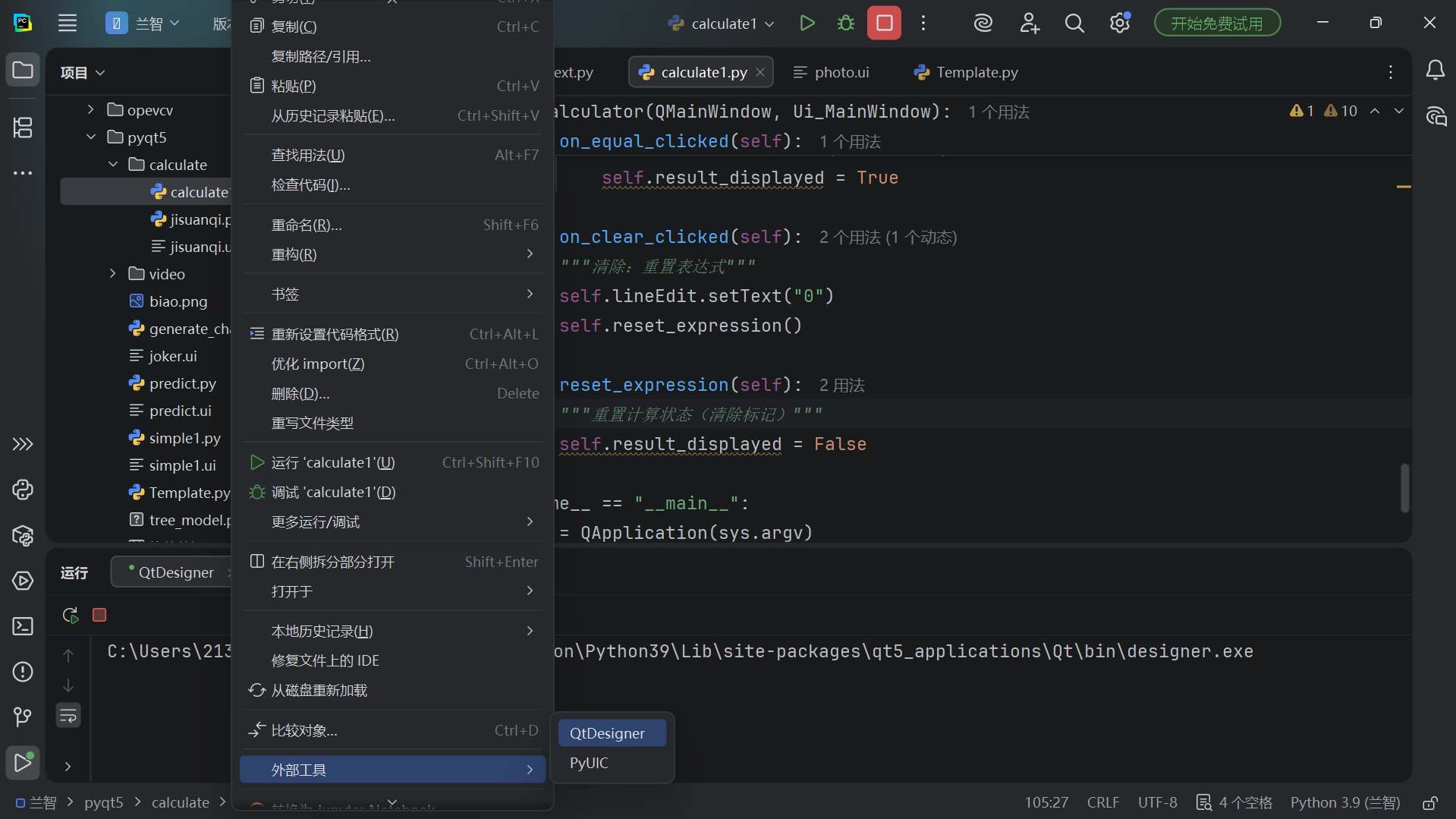 方法1,在终端执行(确保当前目录包含 jisuanqi.ui):