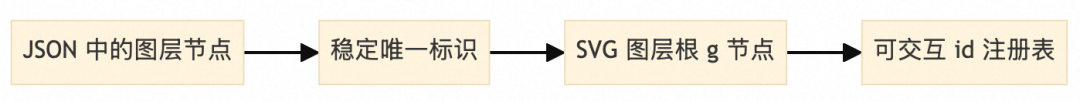| 身份绑定 | JSON 图层稳定 id → SVG 根节点 id + 数据标记,作为一切交互与回写的锚点 |