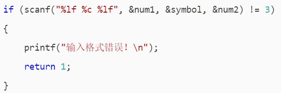 if (scanf("%lf %c %lf", &num1,&symbol,&num2) != 3)