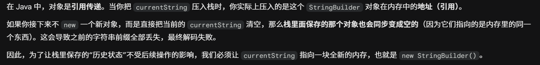 问题1:这里重置currentString能不能用currentString.setLength(0),因为频繁 new 对象可能带来的性能和内存开销