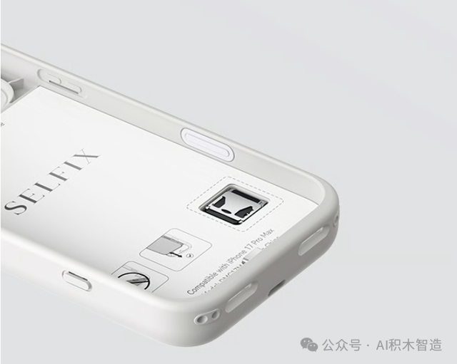 Selfix 壳内侧展示:兼容 iPhone 17 Pro Max,内置 microSD 卡槽