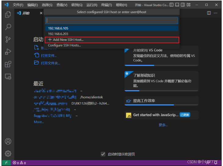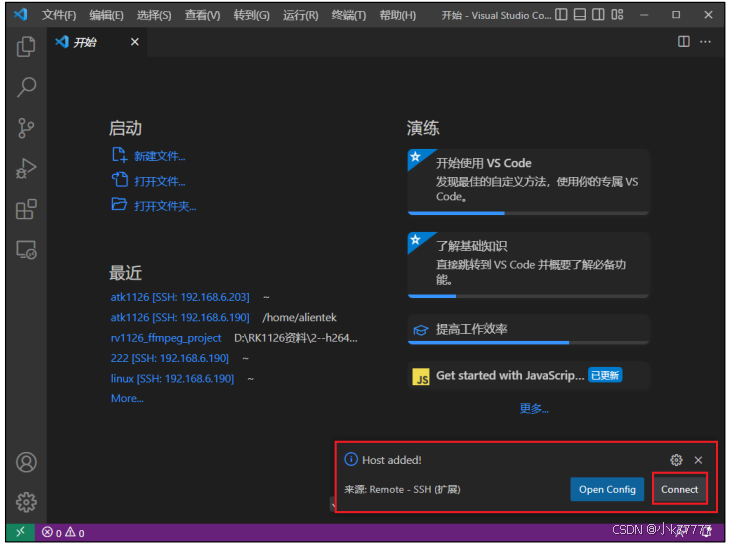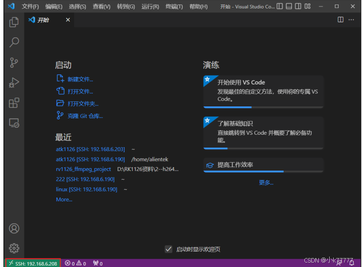 (9)上述操作后就能弹出新的 vscode 窗口,显示连接成功,如下图所示: