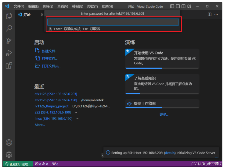 (1)打开vscode--->点击左下角打开远程窗口