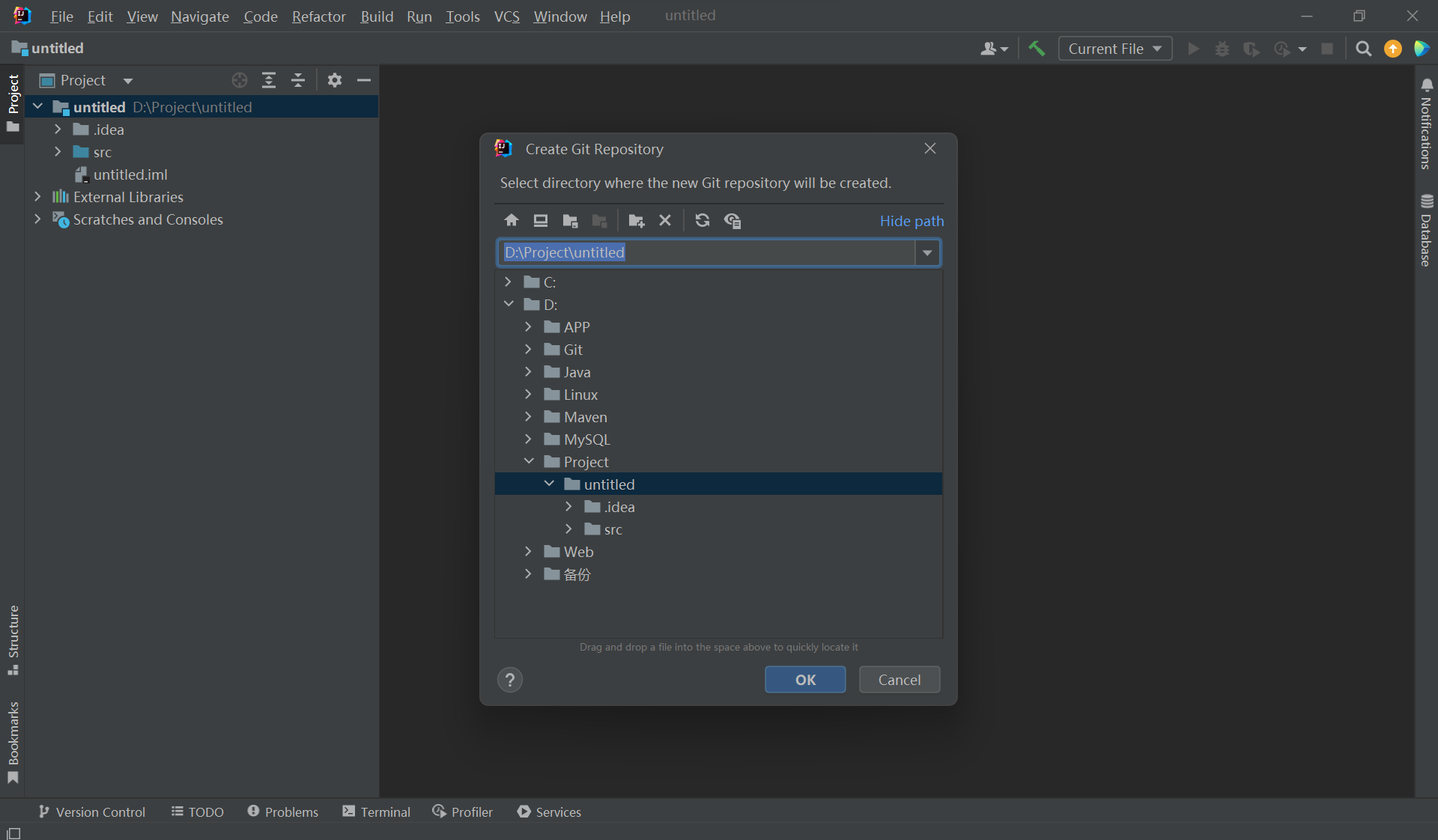 点击 Create Git Repository 之后,弹出一个小窗口,选择要初始化的本地项目。