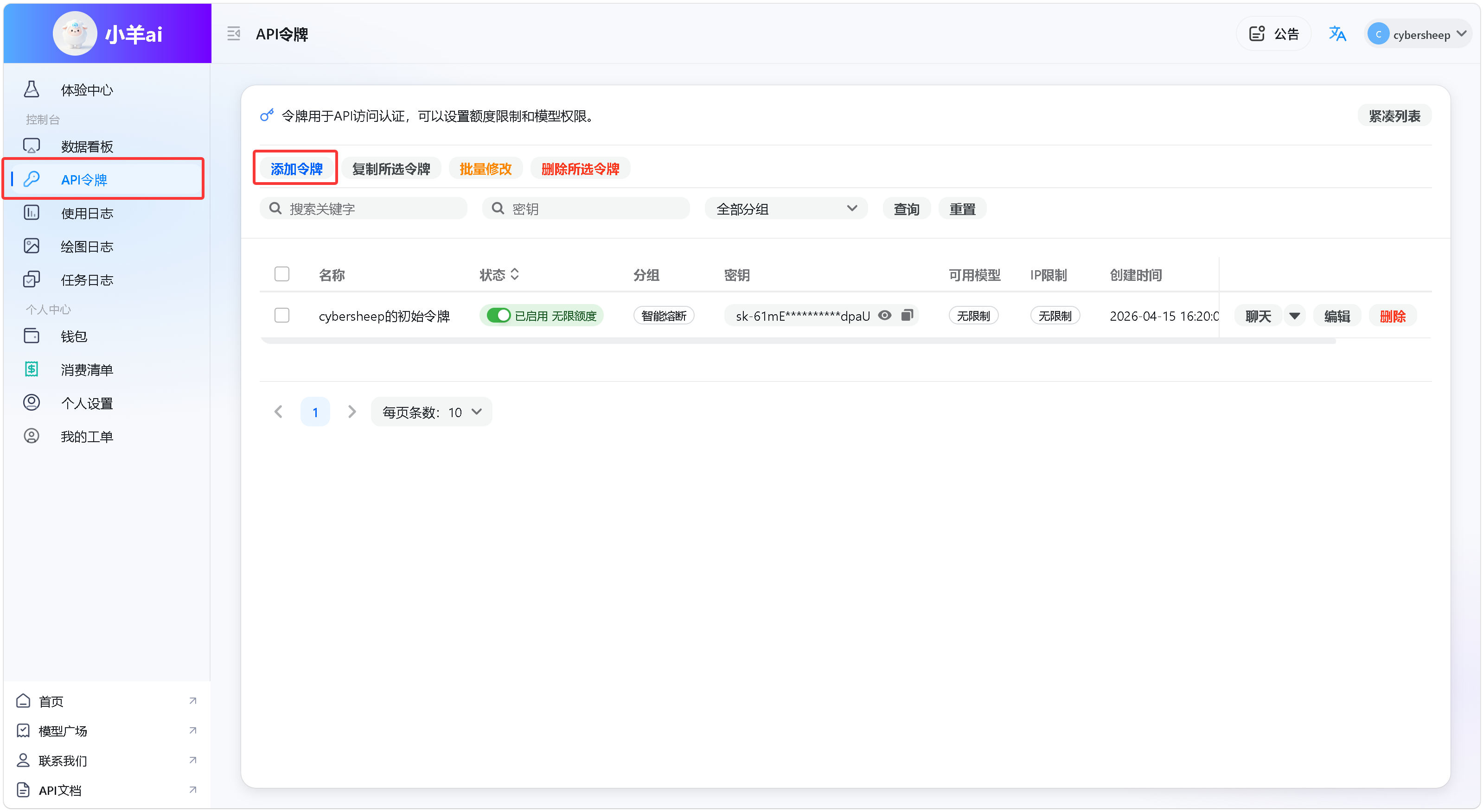 3. 注册小羊ai账号,创建API密钥