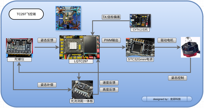 如果飞机悬停不稳,摄像头看到的图像就会一直晃。图像一晃,阈值分割会不稳定,中心点会跳,后面的车辆跟随和地面执行也都会跟着乱。所以这道题里,飞控不是辅助模块,而是整个系统的地基。