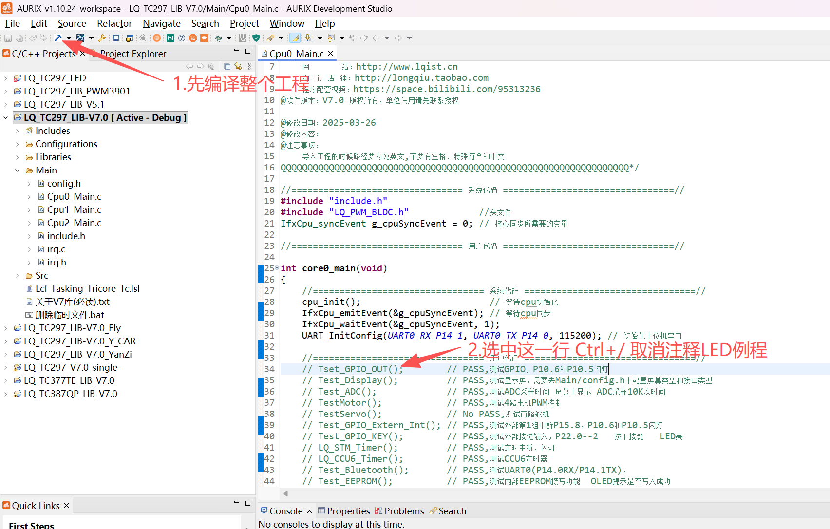 这一步建议不要急着改代码,先把原始工程完整编译一遍,看看有无报错,再打开点灯例程。