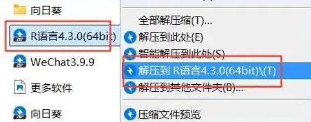 2.解压完成后,进入解压出的文件夹中,找到并双击【R-4.3.0-win.exe】文件,开始安装R语言4.3.0;