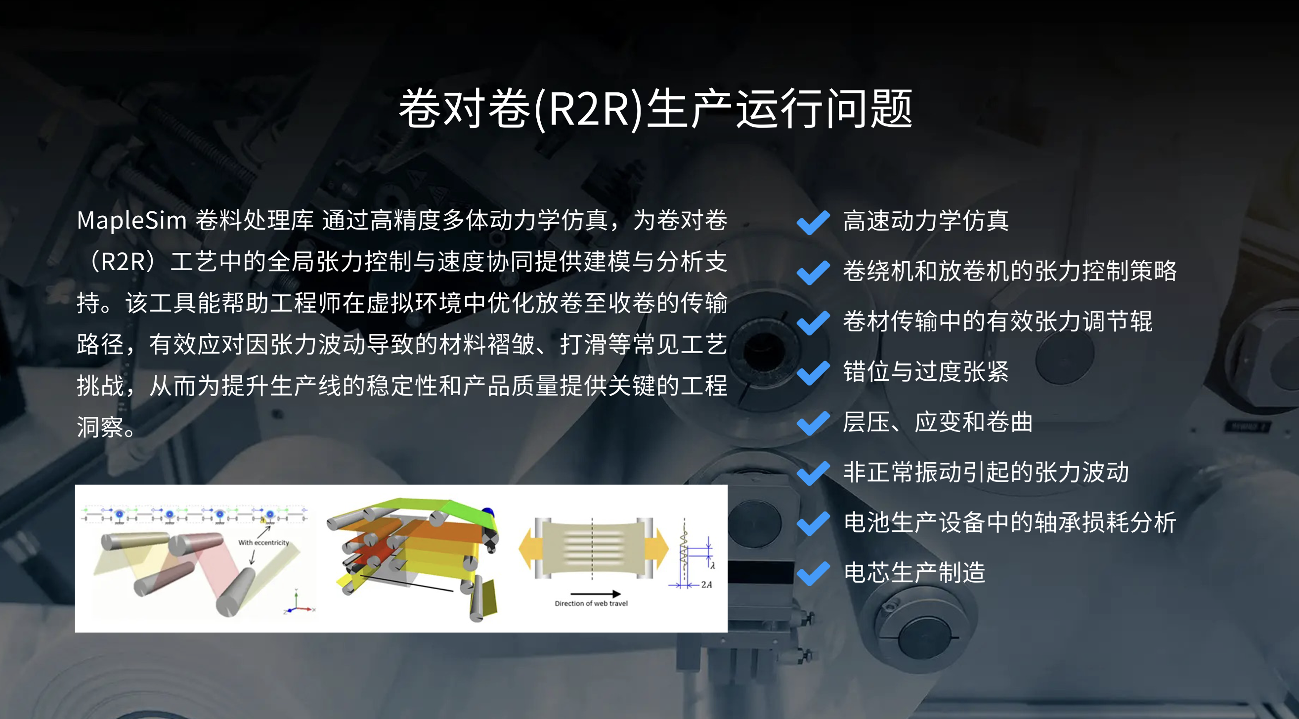 研讨会主题:从物理测试到虚拟测试:用MapleSim卷绕和卷材加工仿真库加速电池产线优化