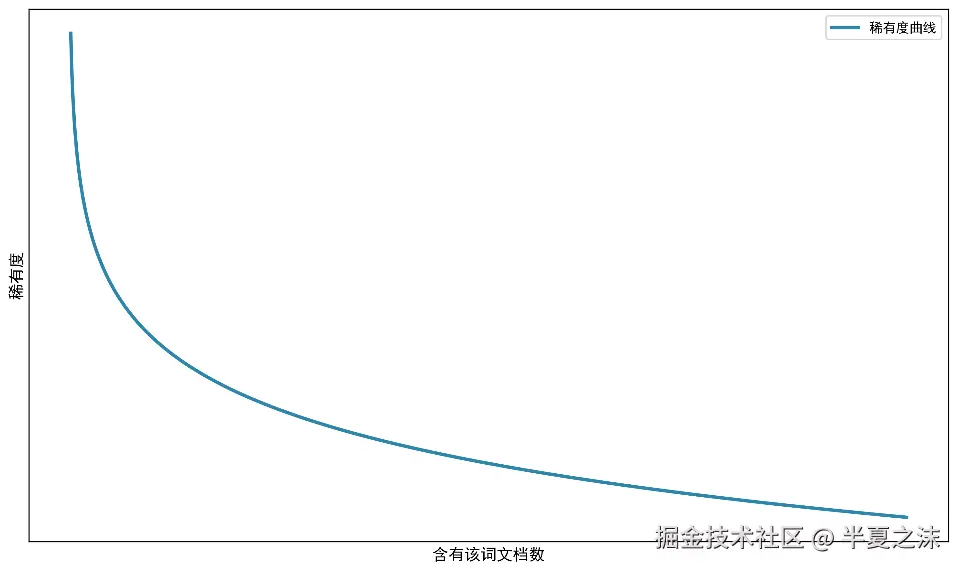 稀有度 和含有该词文档数的曲线图可以表示如下。