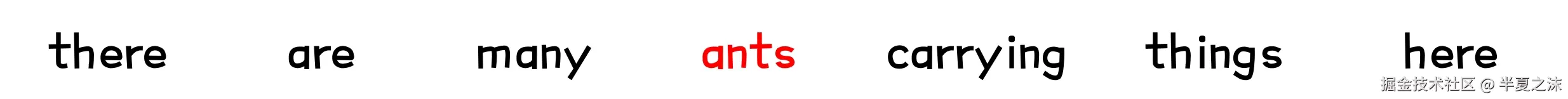 在例子中,中心词 是"ants ",所以中间的词就是"ants ",此时从语料库中采样 得到一条包含中心词"ants"的句子,假定采样得到的这个句子表示如下。