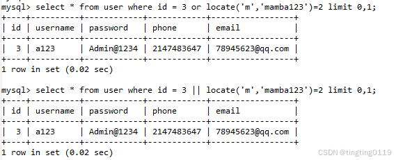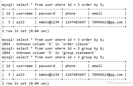 select * from user where id = 3 order by 3;